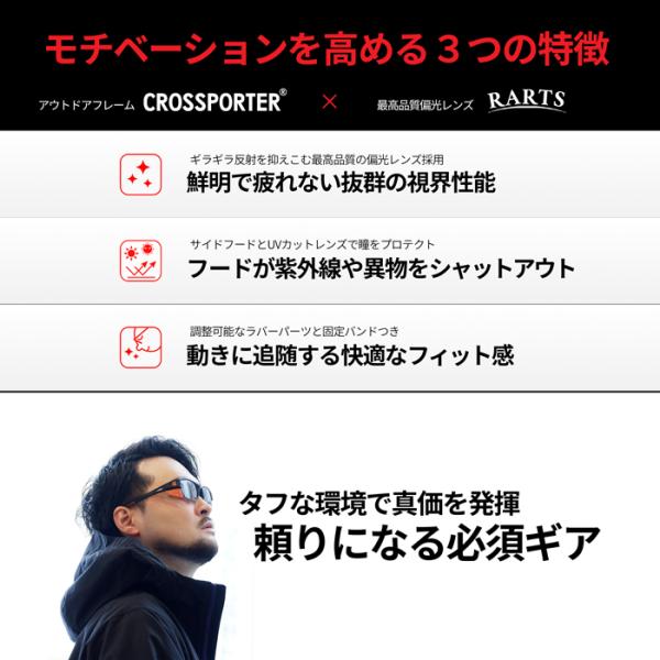 サングラス 偏光 日本製レンズ 度付き 度入り アーツ RARTS 大きい クロスポーター メガネ 釣り フィッシング バス 渓流 海 エギング 運転 ゴルフ サバゲー 登山