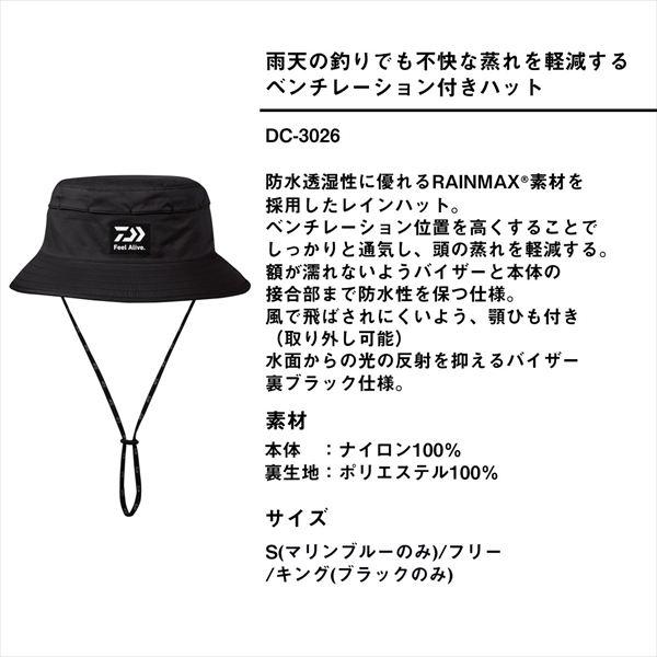 ダイワ 帽子 DC-3026 RAINMAX ベンチレーションハット ブラック キング