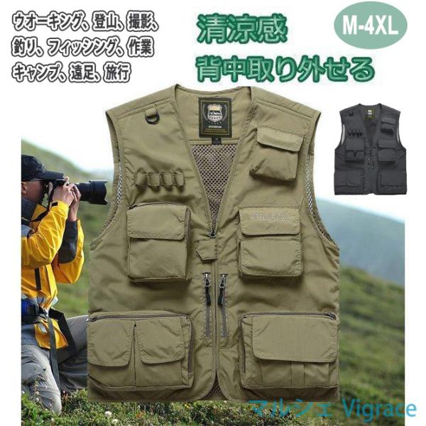 フィッシングベスト カメラマンベスト メンズ アウトドアベスト メッシュ フィッシングベスト ジャケット ベスト トップス 釣り 登山 多機能 速乾 通気 作業服