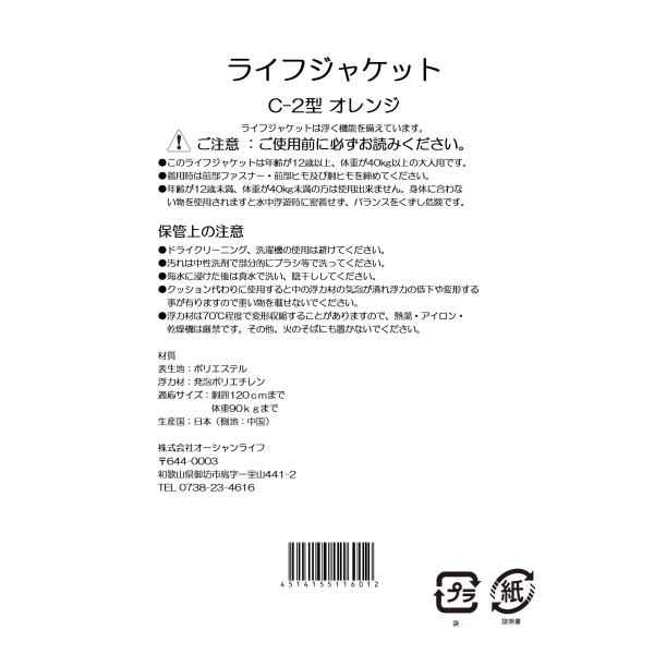 桜マーク付 ライフジャケット 小型船舶用 C−2 オレンジ 2着セット 救命胴衣 津波水害対策 防災