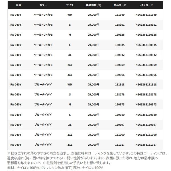 (26年4月新商品) シマノ ULイージーケア ジャケット 05 RA-040Y オフホワイト XLサイズ