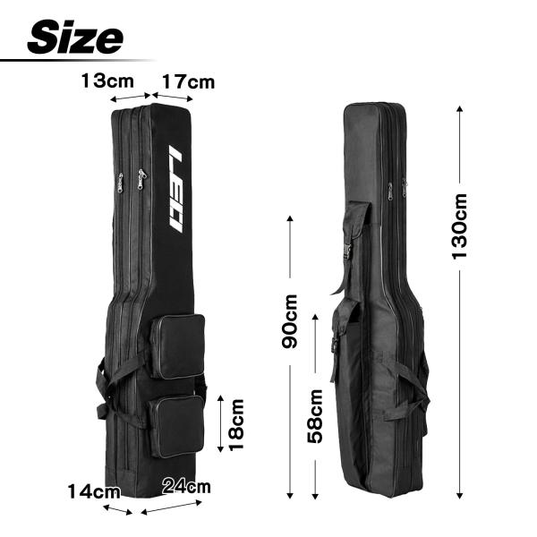 waku fimac 釣り竿ケース ロッドバッグ 釣具収納袋 折りたたみ式 大容量 肩掛け 持ち運び便利 ブラック