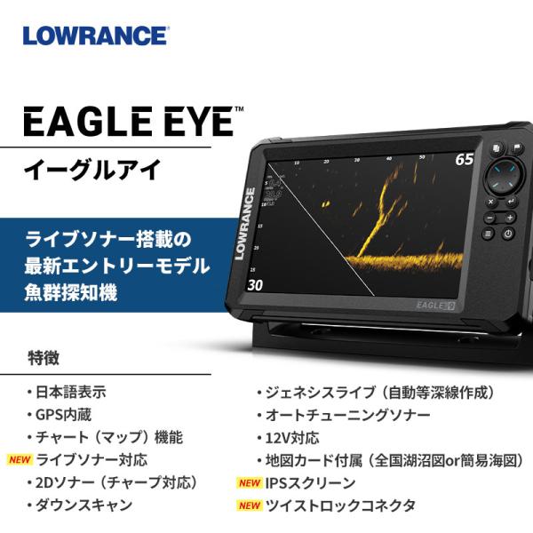 ローランス 魚群探知機 Lowrance EAGLE EYE ライブソナー 日本語表示 GPSプロッター魚探 正規輸入品 ブラックボックス不要 本体直結タイプ