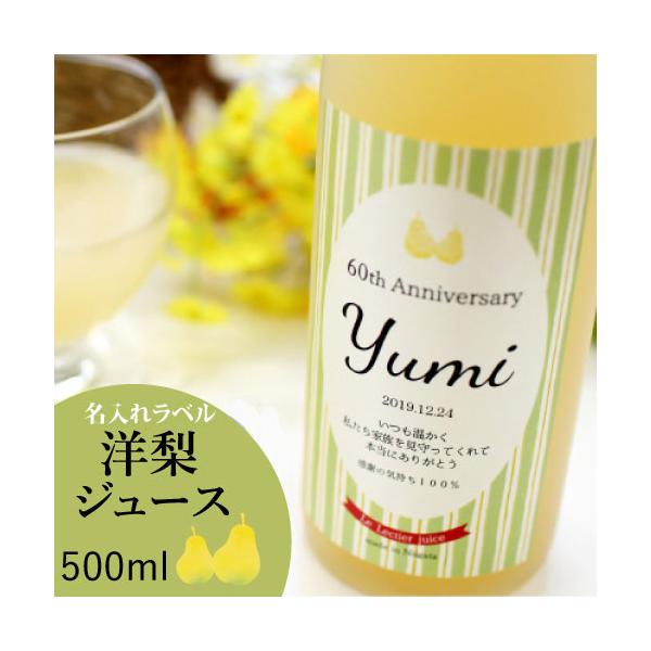 名入れ 還暦のお祝い 古希のお祝い 喜寿のお祝い 傘寿 米寿 退職祝い 結婚祝い ギフト 男性 女性 洋梨ジュース 500ml シュシュ