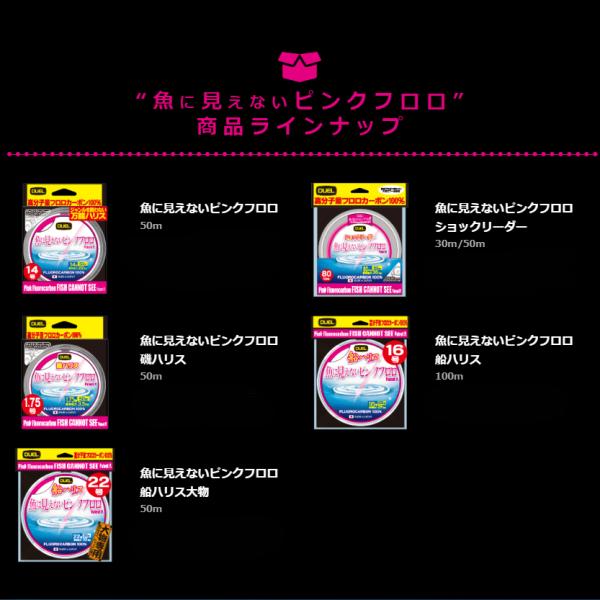 デュエル 魚に見えないピンクフロロ 船ハリス 100m 4.0号 フロロカーボン ライン