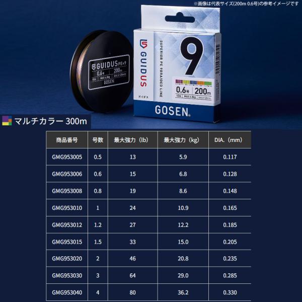 ●ゴーセン ガイダス PE×9 300m マルチカラー PEライン(0.5-4号) 【メール便配送可】 【まとめ送料割】