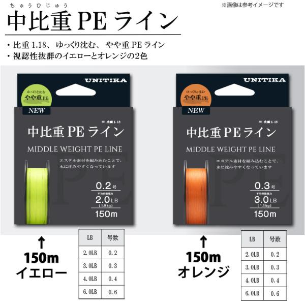 ●ユニチカ 中比重 PEライン 150m イエロー (0.2-0.6号) 【メール便配送可】 【まとめ送料割】