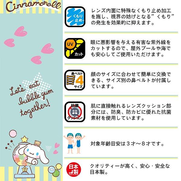 SWANS スワンズ シナモロール サンリオ スイミング ゴーグル 水中メガネ 3歳 4歳 5歳 6歳 7歳 8歳 水遊び キッズ 子供 幼児 低学年 日本製 メール便送料無料