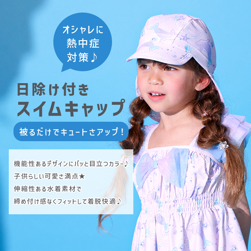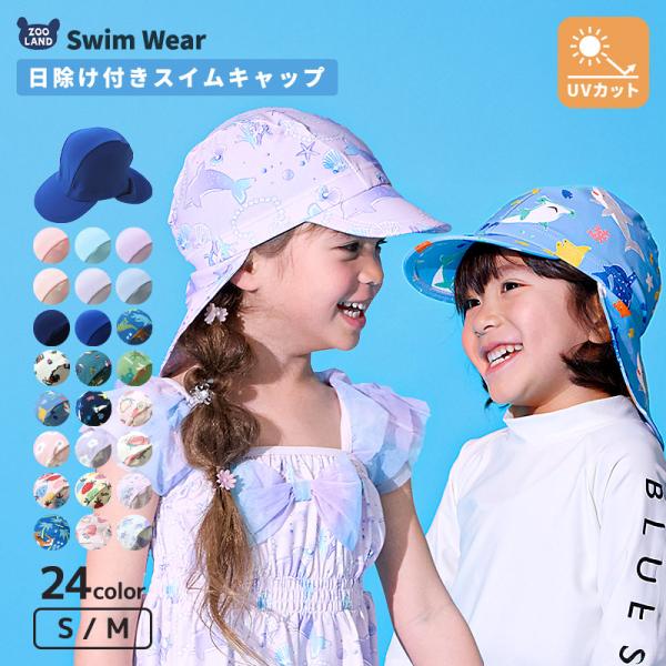 スイムキャップ キッズ つば付き 日除け 日よけ 男の子 女の子 子供用 水泳帽 ( S-M ) UVカット UV加工 UPF50+ ベビー 紫外線対策 プール 海水浴 水着グッズ