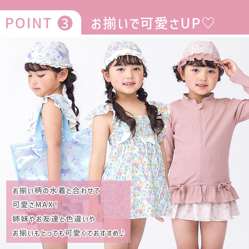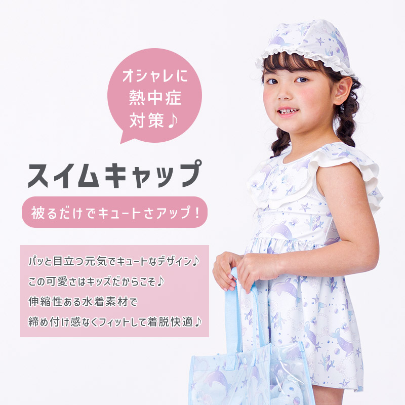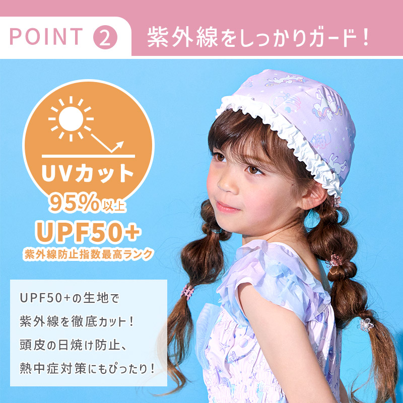 スイムキャップ プールキャップ 女の子 キッズ 子供用 水泳帽 (S-M) UV加工 UPF50+ UVカット 紫外線対策 ガールズ 日よけ 帽子 子供水着 水着用品