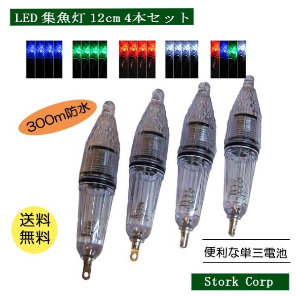 集魚灯 水中 高輝度 LED ライト 4本 セット 12cm 夜間 照明 夜釣り イカ釣り
