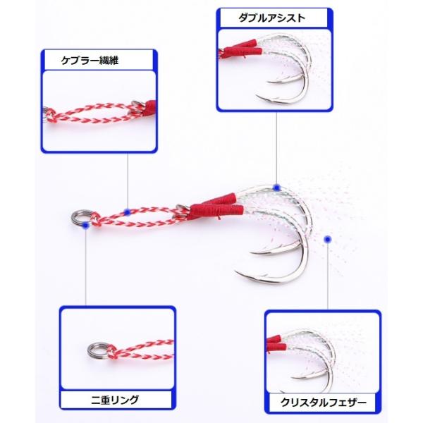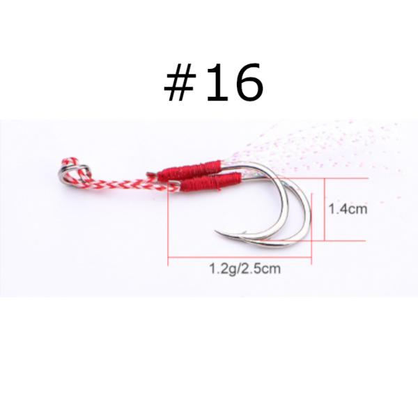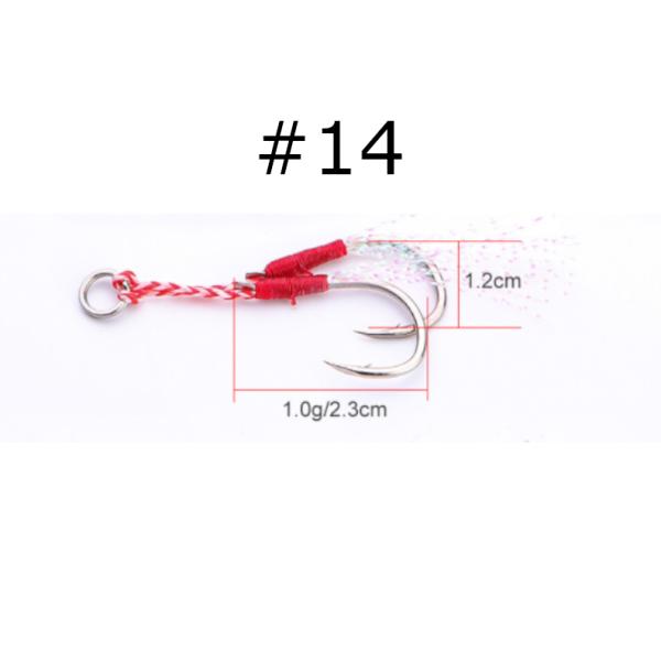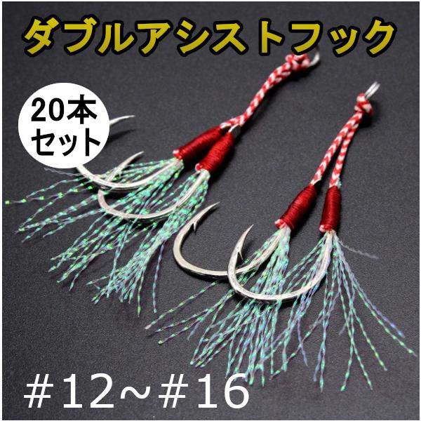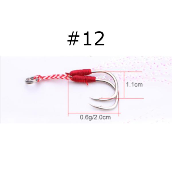 ダブルアシストフック 10組セット*2個(20組セット)Sサイズ(#12)Mサイズ(#14)Lサイズ(#16)メタルジグ タルバイブのアシストフックに ティンセル付き