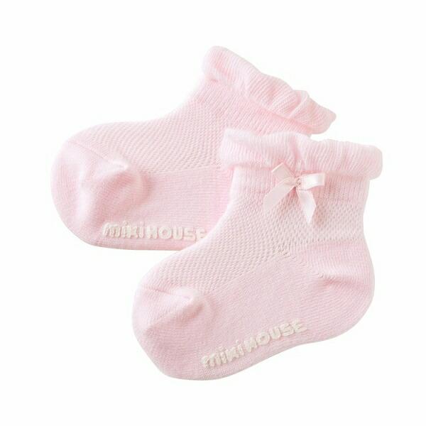 ミキハウス正規販売店/ミキハウス mikihouse 靴下 メッシュローカットソックス リボン 女の子 シンプル(11cm-21cm)アウトレット