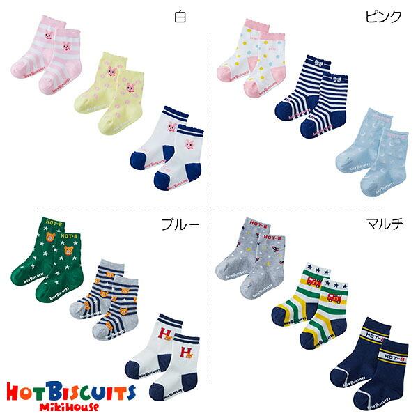 ●30%OFFセール●ミキハウス正規販売店/ミキハウス ホットビスケッツ mikihouse ソックスパック3足セット(9cm-19cm)アウトレット 靴下