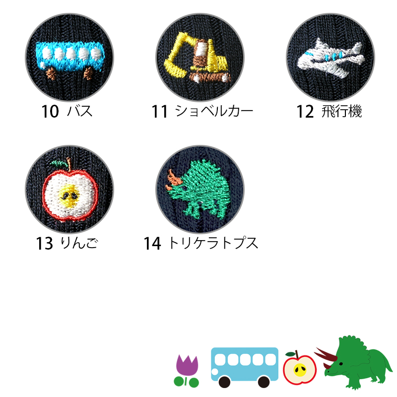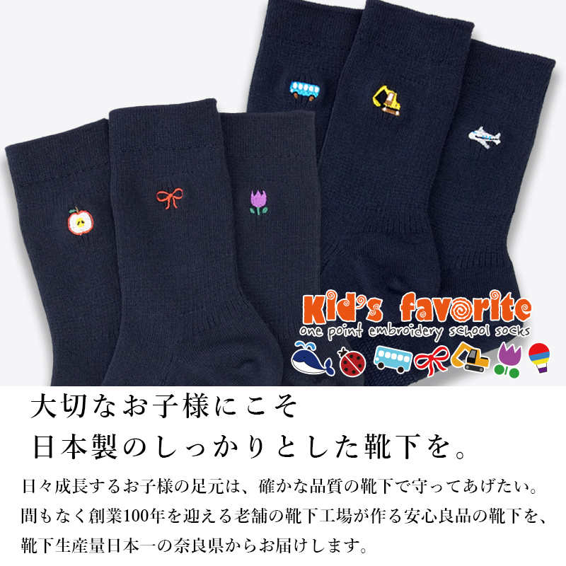 キッズワンポイント刺繍入ソックス 紺 ネイビー 16-18cm 19-21cm 日本製 子供用 女の子 男の子 小学校 選べる20種類 プレゼント 誕生日 遠足 運動会 七五三