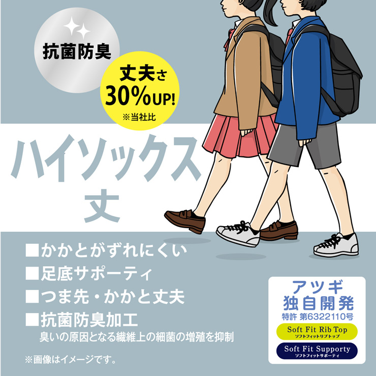 【2点以上お買い上げで送料無料】 スクールソックス ハイソックス 学校 白 黒 紺 アツギ new スクールタイム ハイソックス丈 リブ CK78082 2足組(06129)