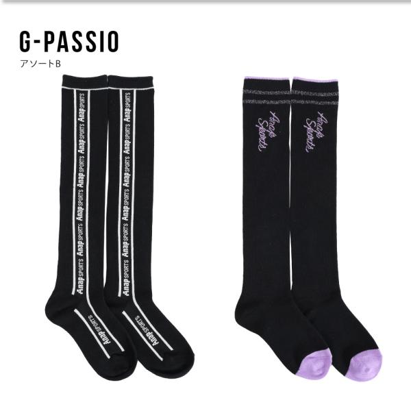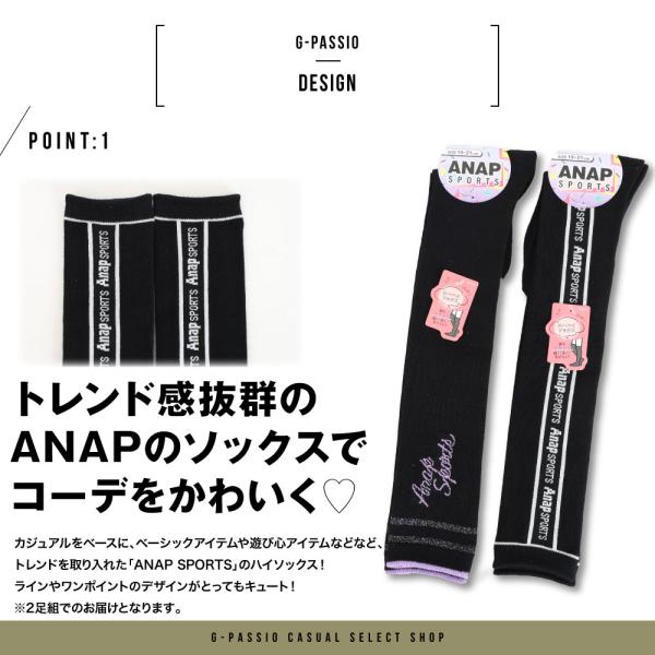 ANAP アナップ 靴下 キッズ ニーハイソックス 2足組 ガールズ 子供 19〜21 22〜24 スポーツ トレンド ティーン ライン ロゴ 福助