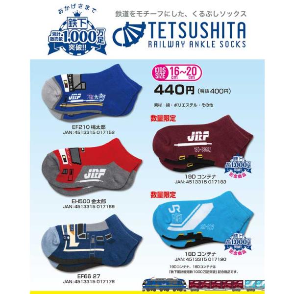 5足以上でネコポス送料無料対象商品 鉄下 くるぶしソックス 鉄道ソックス キッズサイズ 金太郎 桃太郎 18Dコンテナ 19Dコンテナ EF66 27 子供