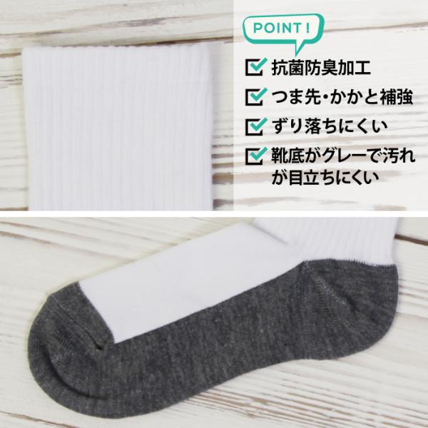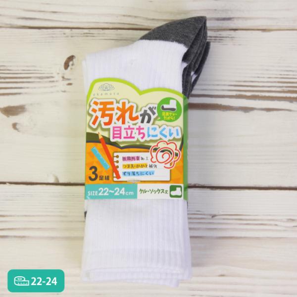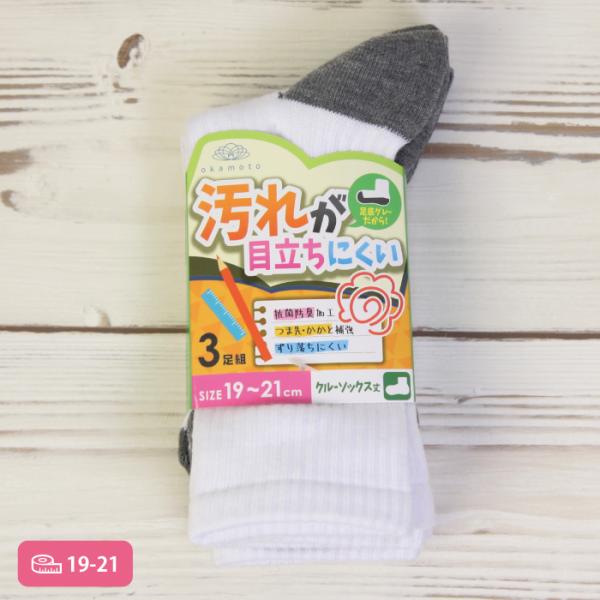 汚れが目立ちにくい ソックス 3足組 クルー丈 足底グレー 白 抗菌防臭 つま先かかと補強 ずり落ちにくい スクールソックス 通学 通園 学校 靴下のオカモト