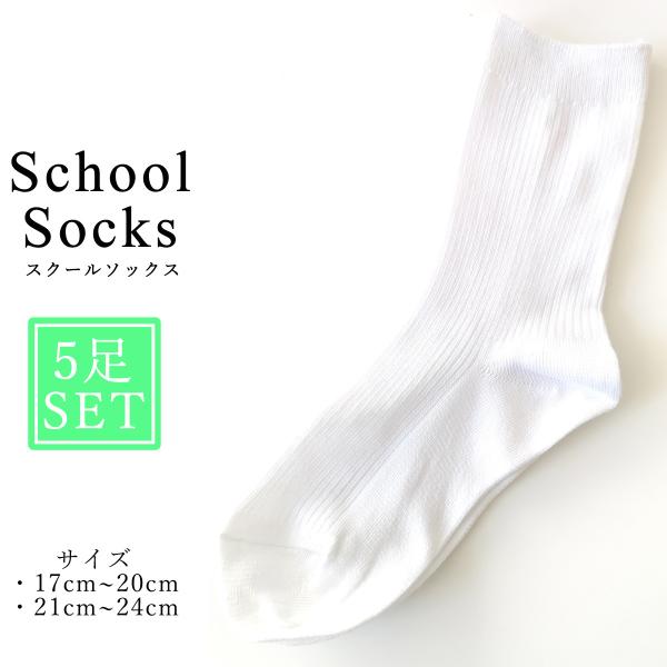 靴下 学生 白 5足 セット 中学 小学 ソックス 子供 送料無料 父の日 メール便送料無料
