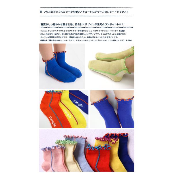 stample スタンプル 73155 メッシュ メロウ ライン ショートソックス 3足組 靴下 子供 キッズ おしゃれ 女の子 滑り止め