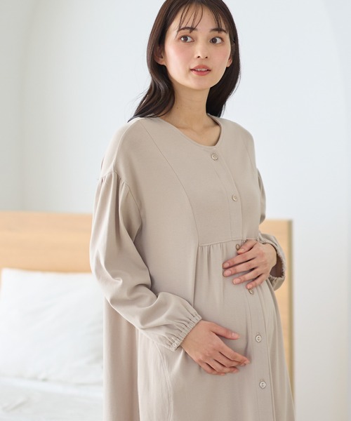 マタニティ フライスネグリジェ ワンピースパジャマ/マタニティパジャマ(マタニティ/ 妊婦服)授乳楽々 妊婦服 産前・産後対応