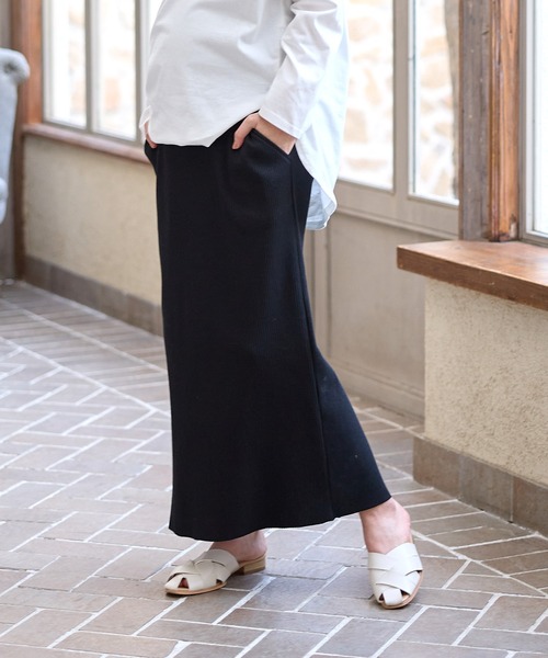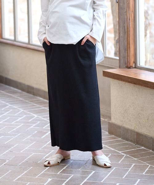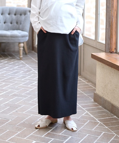 マタニティ 産後にも活躍 セルフカットできる マタニティリブナロースカート ロング(マタニティ~産後)妊婦服 産前・産後対応