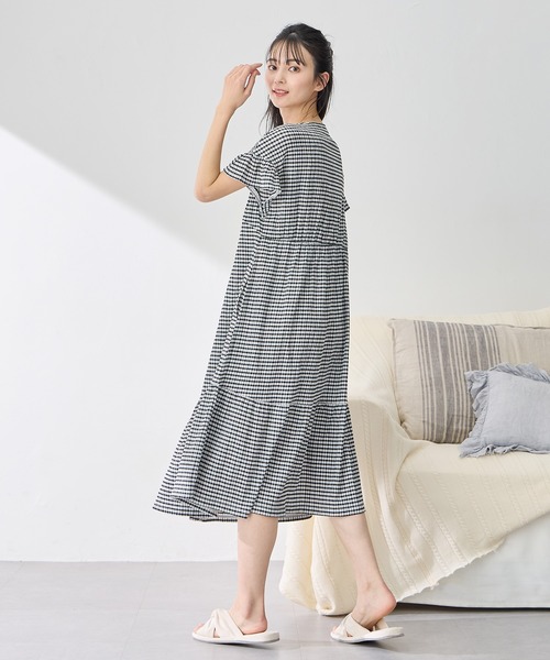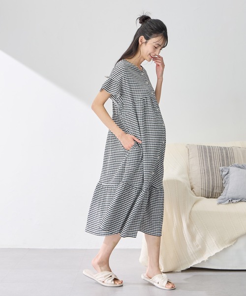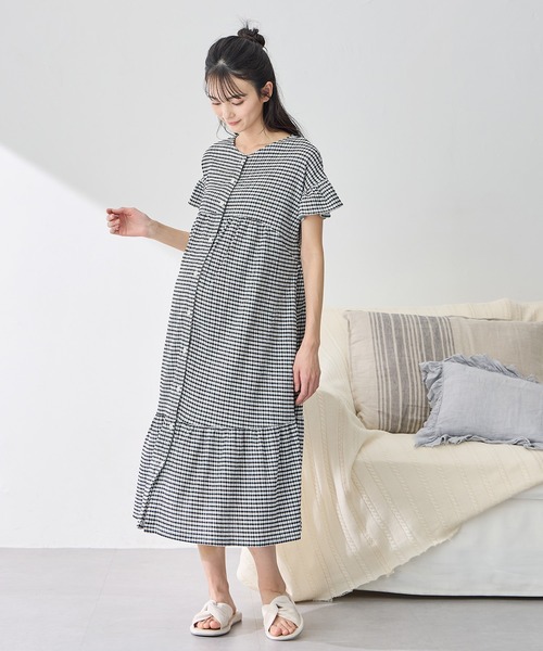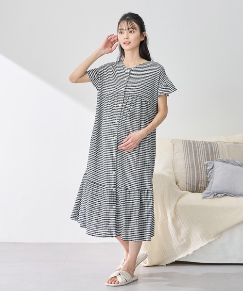 マタニティ シャーリング ジャガードネグリジェ/ ワンピースパジャマ(産前・産後対応 マタニティ&授乳服 ルームウェア)
