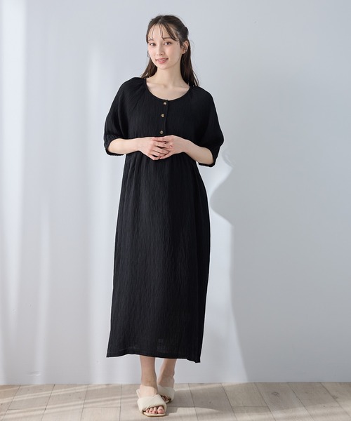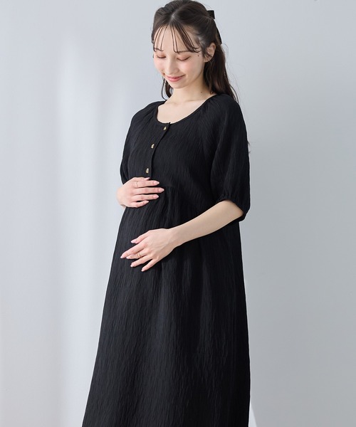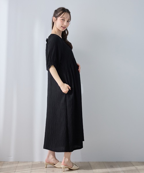 マタニティ さらさら楊柳バックリボンワンピース(マタニティ/授乳服)授乳口付き 授乳楽々 妊婦服 産前・産後対応