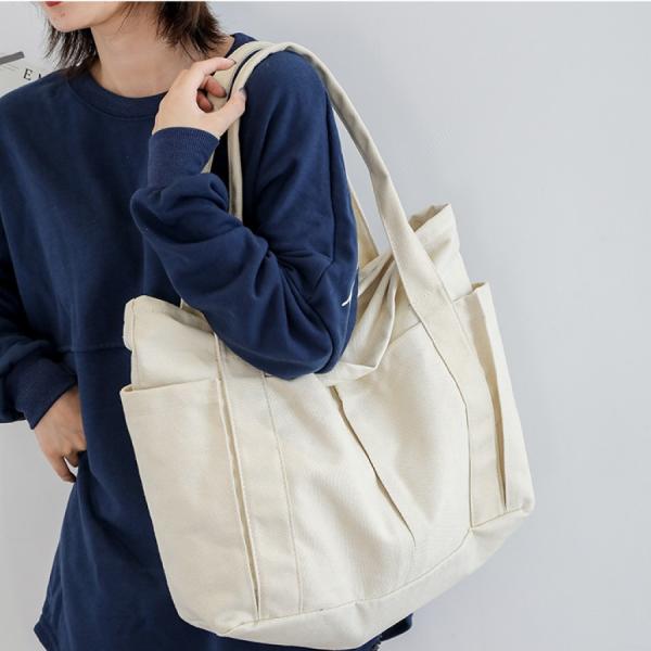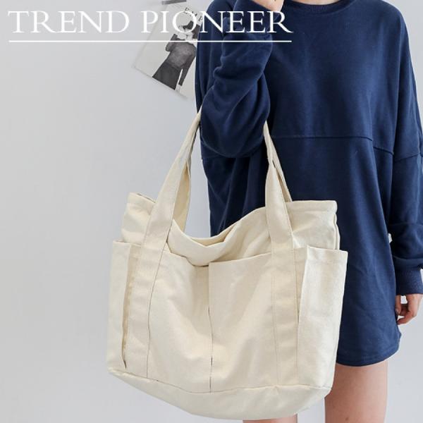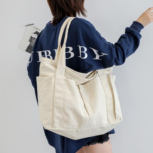 エコバック マザーズバッグ マザーズトート キャンバスポケットトートバッグ マルチポケットトートバッグ レディース ナチュラル 多機能トート 収納力抜群 学生