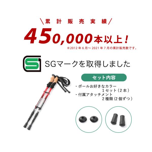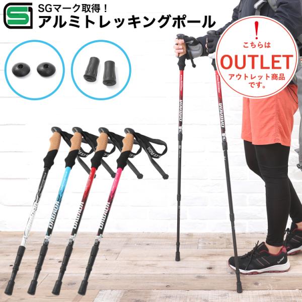 【アウトレット品】トレッキングポール 2本セット SGマーク取得 軽量220g 最少56.5cm キャップ付き 登山杖 登山用品 在庫限り