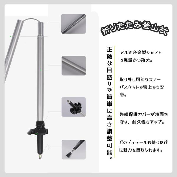 トレッキングポール 折りたたみ 折畳み 長さ調節 コンパクト 軽量 伸縮式 アウトドア ハイキング ウォーキング 登山用