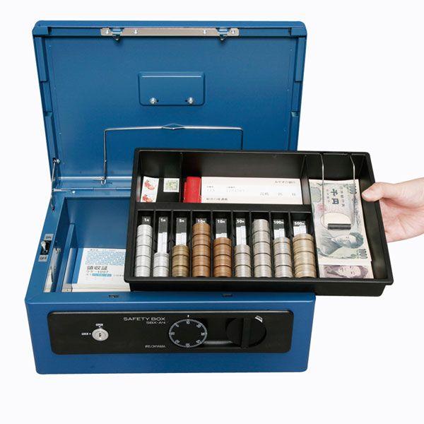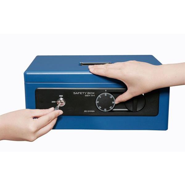 金庫 家庭用 手提げ金庫 アイリスオーヤマ A4サイズ SBX-A4 ブルー グレー 小型 コインカウンター 小銭 金庫 硬貨 貴重品 セーフティボックス 事務用品 備品