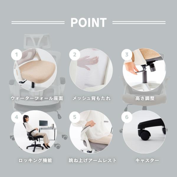オフィスチェア 肘 跳ね上げ メッシュ デスクチェア 学習 勉強椅子 テレワーク キャスター 腰痛 ワークチェア 白 オフィスチェアー