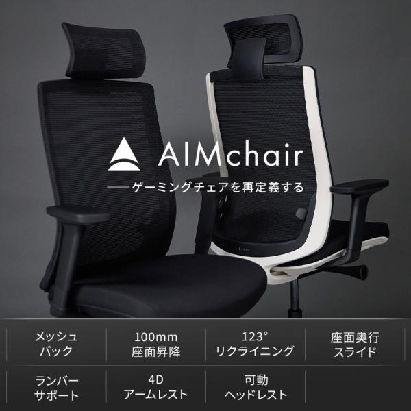 AIMchair(エイムチェア) ゲーミングチェア オフィスチェア メッシュ 高機能 ワークチェア 在宅ワーク ヘッドレスト付 ランバーサポート 4Dアームレスト AIM-01