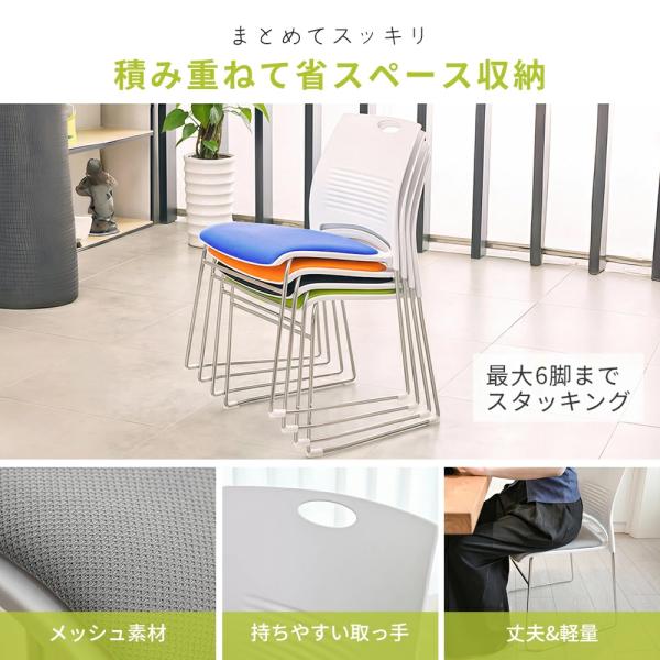 ミーティングチェア 会議椅子 スタッキング 1脚 軽量 クッション付き 背もたれ有り セミナー 塾 オフィス 省スペース 収納可能 ミーティング 受付