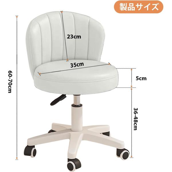 オフィスチェア 背もたれ スツール PUレザー 1脚/2脚セット 高さ調節可能 360°回転椅子 静音キャスター 在宅勤務 仕事 診察 美容室 35*35*70cm