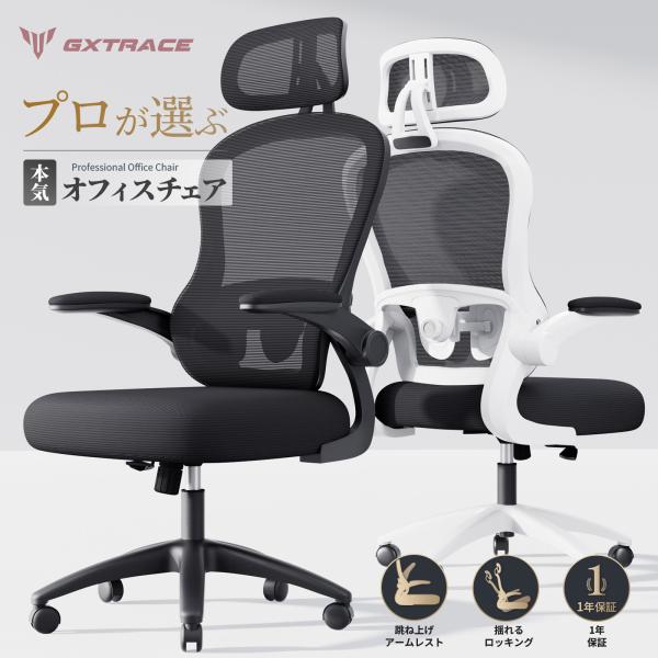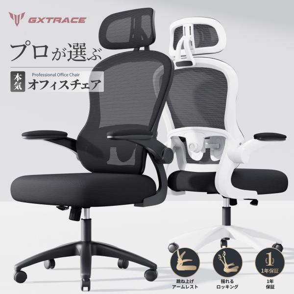 GXTRACEオフィスチェア デスクチェア 椅子 テレワーク 疲れない ブラック 跳ね上げ式アームレスト 3Dヘッドレスト 通気性メッシュ パソコンチェア 爆買