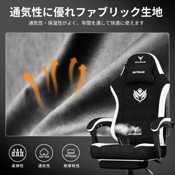 GXTRACE ゲーミングチェア ゲームチェア ファブリック 椅子 オットマン付き 連動アームレスト 145°リクライニングチェア オフィスチェア パソコンチェア 爆買