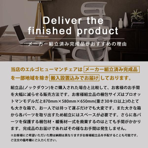 エルゴヒューマン プロ2 ヘッドレスト付 メーカー組立済完成品・梱包材回収 梱包材を無料で処分 家財便配送 アルミベースヘッドレスト 高機能メッシュチェア