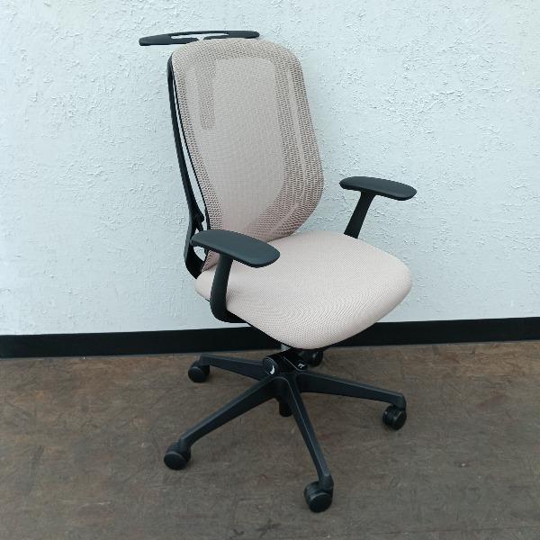 オカムラ オフィスチェア 肘あり シルフィー C646XR-FMP7 2024年製 ベージュ ハイバック メッシュタイプ ハンガー付 チェア イス 椅子 中古