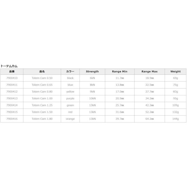 トーテム トーテムカム #0.5~#1.8 単品 / カミングデバイス クライミング 登山 確保器具 マルチピッチ クラック