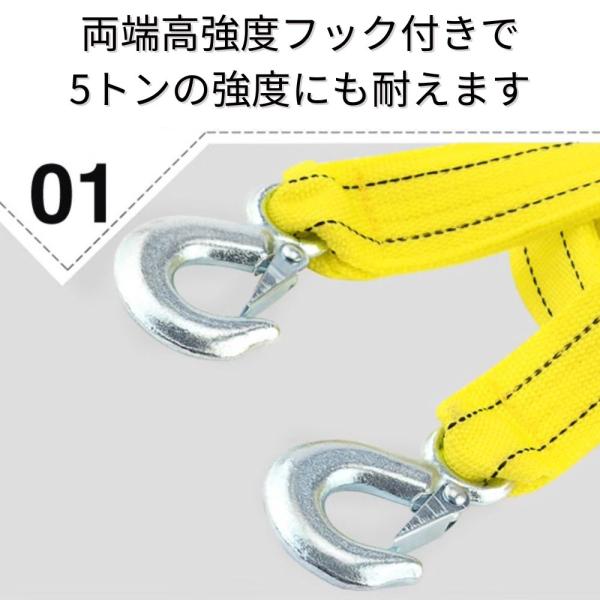 けん引ロープ 4m 耐荷5t 牽引ロープ 丈夫 取り付け簡単 フックタイプ エンスト バッテリー切れ 車をひっぱる 吊荷 車用