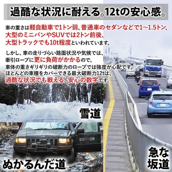 牽引ロープ 12t 車 12トン 牽引 ロープ 4m 自動車 けん引ロープ スリップ 引っ張りロープ 緊急用 脱輪 救助 非常時 災害 大雨 洪水 冠水 ぬかるみ 田んぼ 路肩