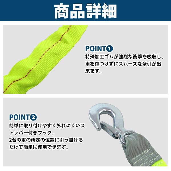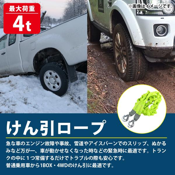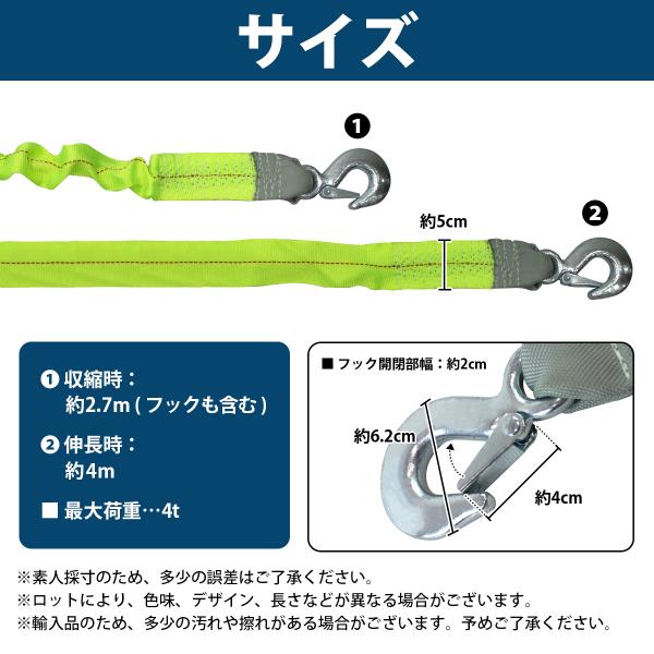 伸びる 牽引 ロープ 4m 4t 4000KG 雪道 砂浜 溝 脱出 伸縮 けん引 フック付き オフロード 事故 故障 不動車 移動 ジムニー 緑