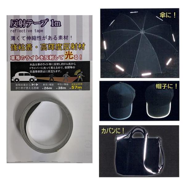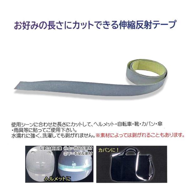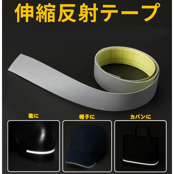 伸びる反射テープ ハサミで自由にカット 強粘着 日本製 反射シール ロング JPマーク認定商品 水濡れに強い 鞄 靴 帽子 ヘルメット バッグ 反射材 送料無料