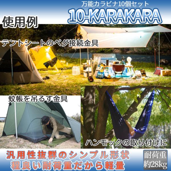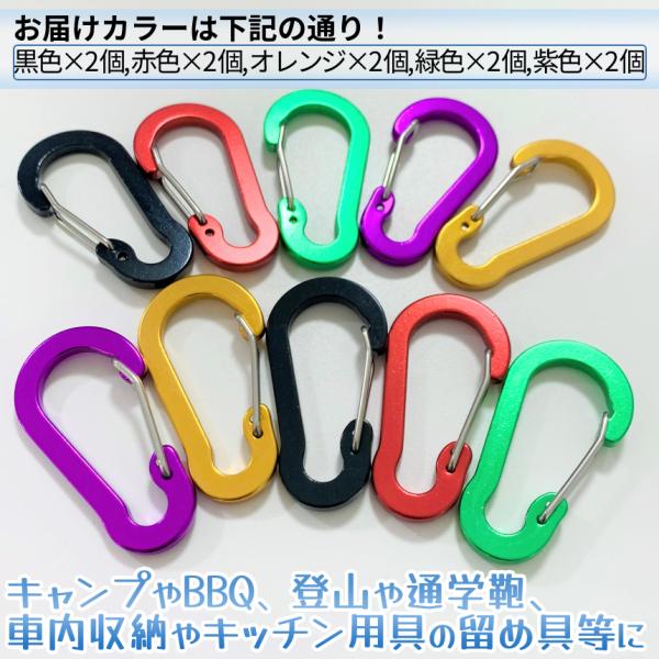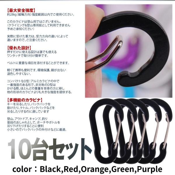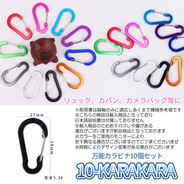 カラビナ D型 ひょうたん形 10個 セット アルミ合金 平打ち オシャレ キーホルダー 鍵 カギ キー キャンプ アウトドア カバン バッグ 万能 便利 10-KARAKARA