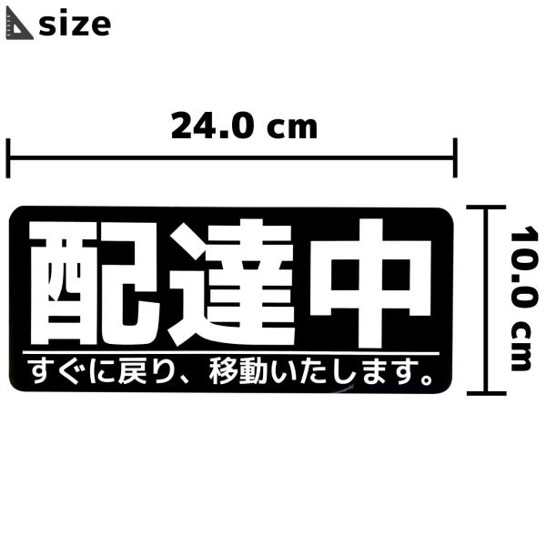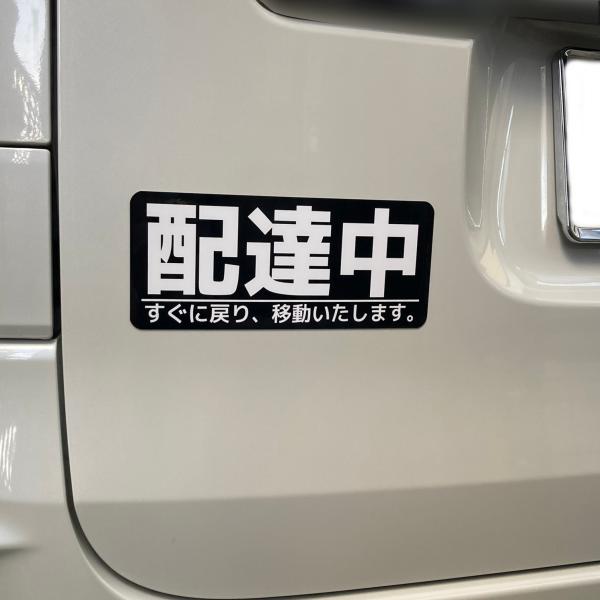 カーマグネット 配達中 すぐに戻り、移動いたします。 (10cm×24cm/ブラック)