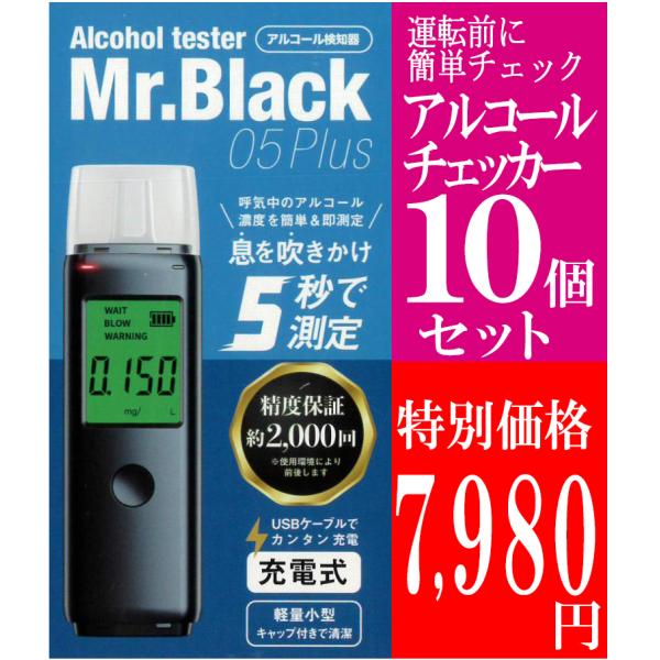 訳あり数量限定 アルコール検知器 10個セット 充電式 アルコールチェック アルコール濃度チェッカー