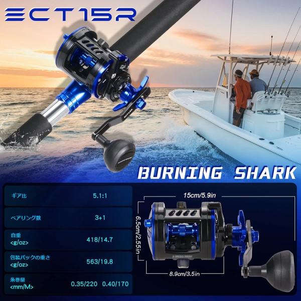 Sougayilang ECT15 レバードラグリール トローリング ベイトリール 両軸リール 最大ドラグ力28kg 大容量 軽量 海釣り 船釣り 釣り用品 アウトドア